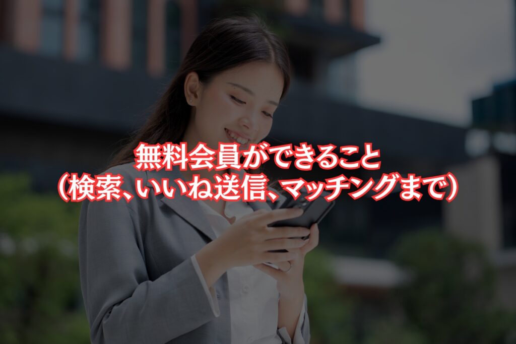 無料会員ができること(検索、いいね送信、マッチングまで)